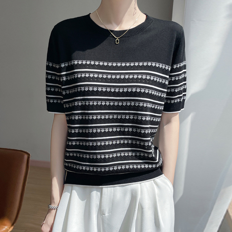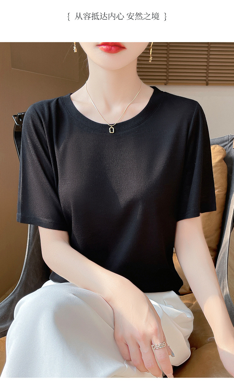 首元をすっきりと見せるクルーネックデザインで、爽やかな印象を与える