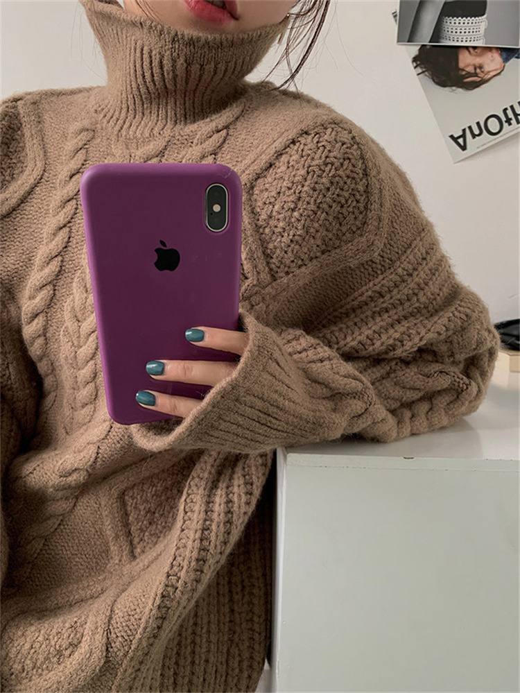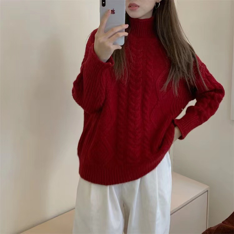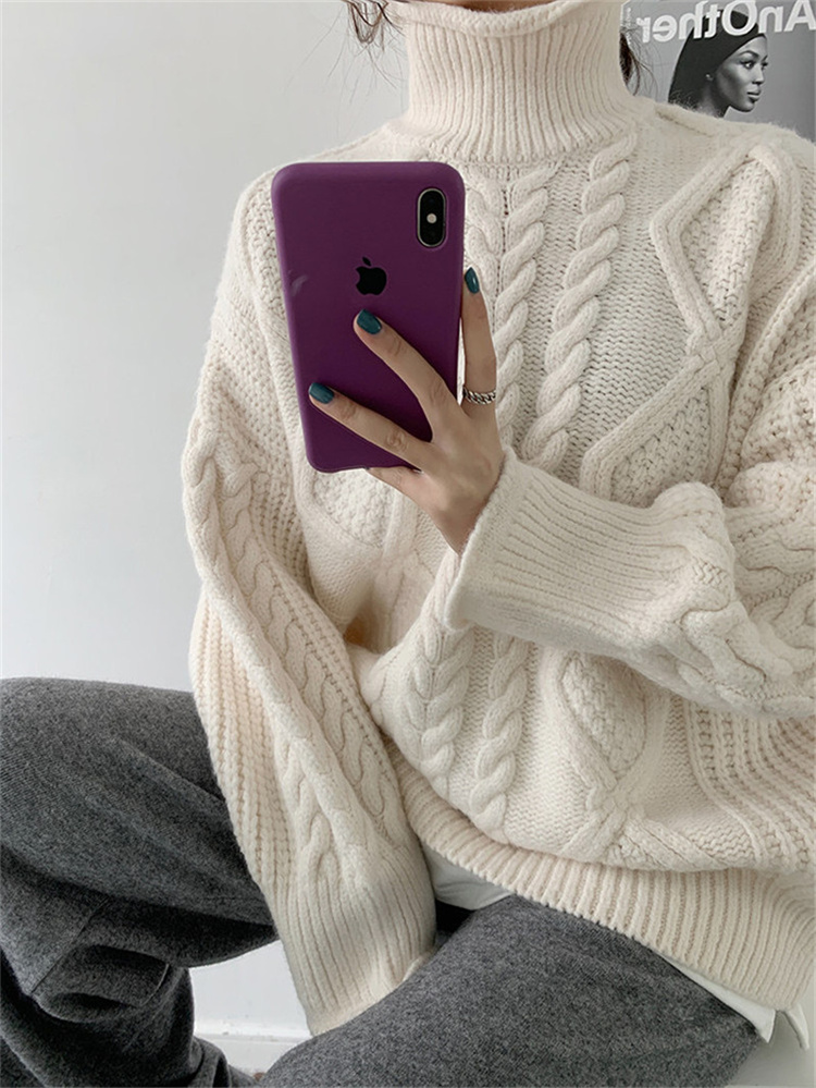 上品なタートルネックデザインのケーブル編みニットセーターです。