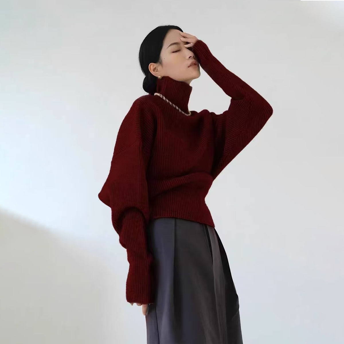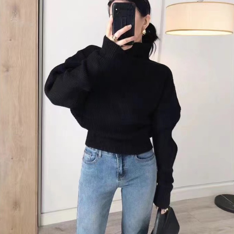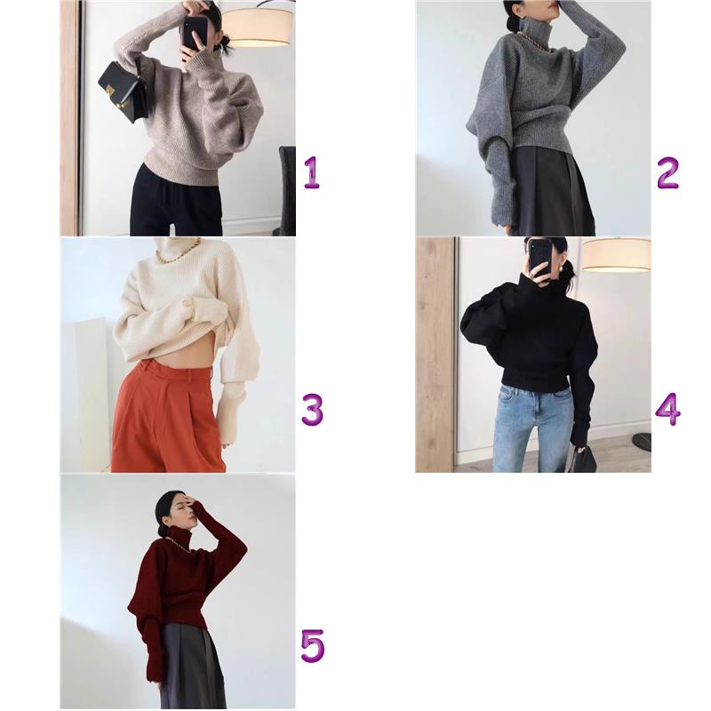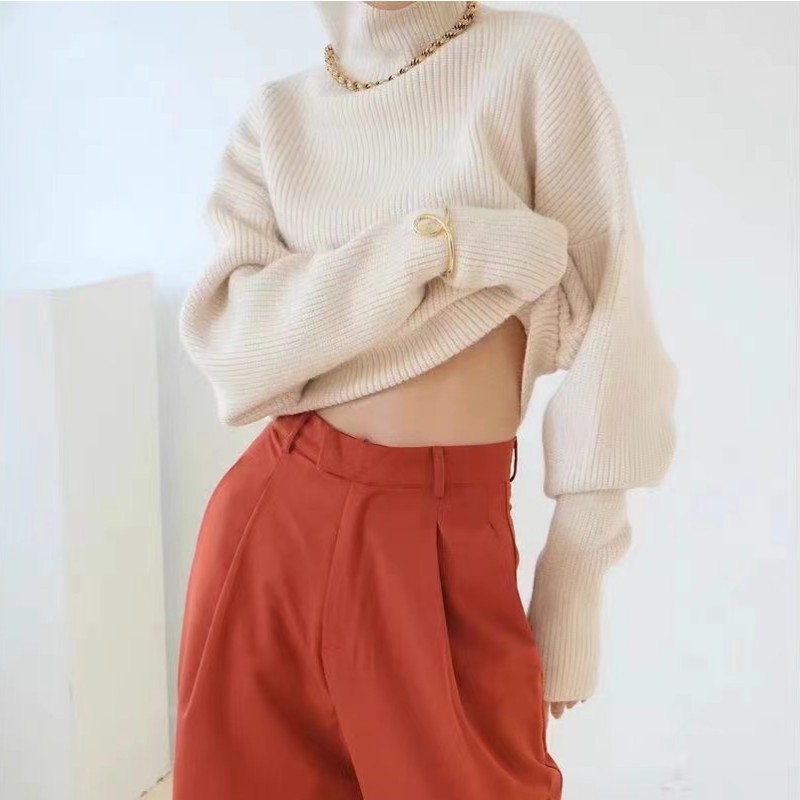 韓国ファッション風のおしゃれなハイネックニットセーターです。
