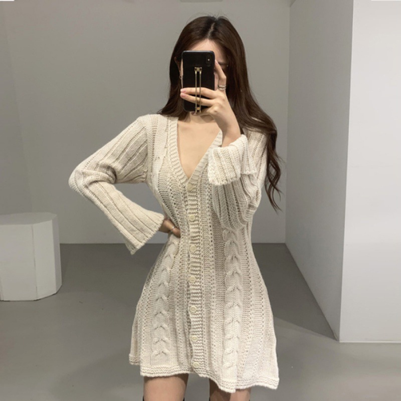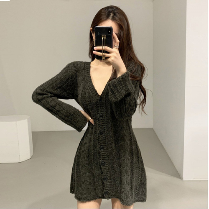 立体的なケーブル編みが魅力的なニットワンピースです。