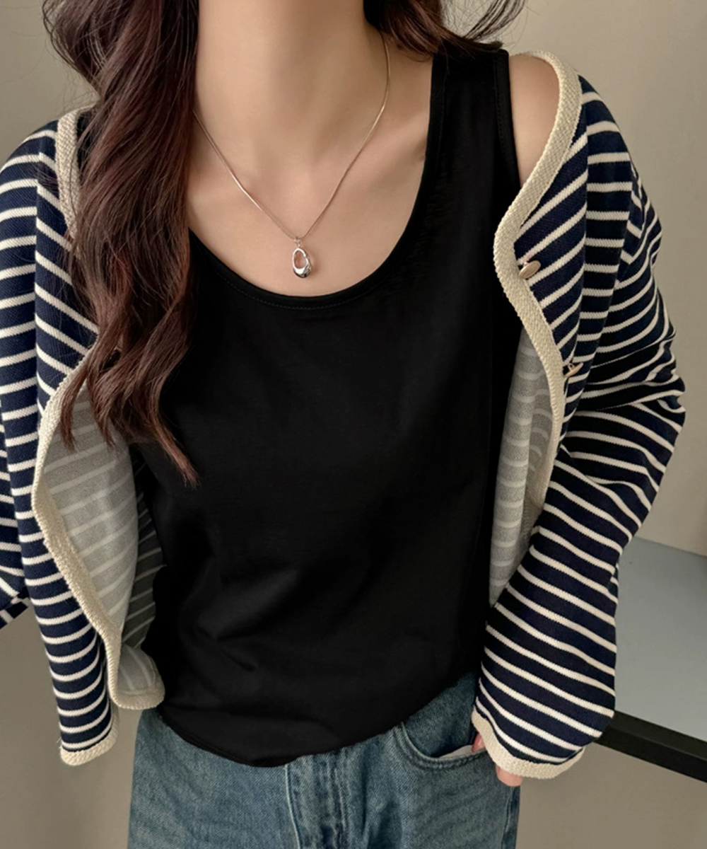 羽織りとの重ね着コーデにも最適な定番デザイン。