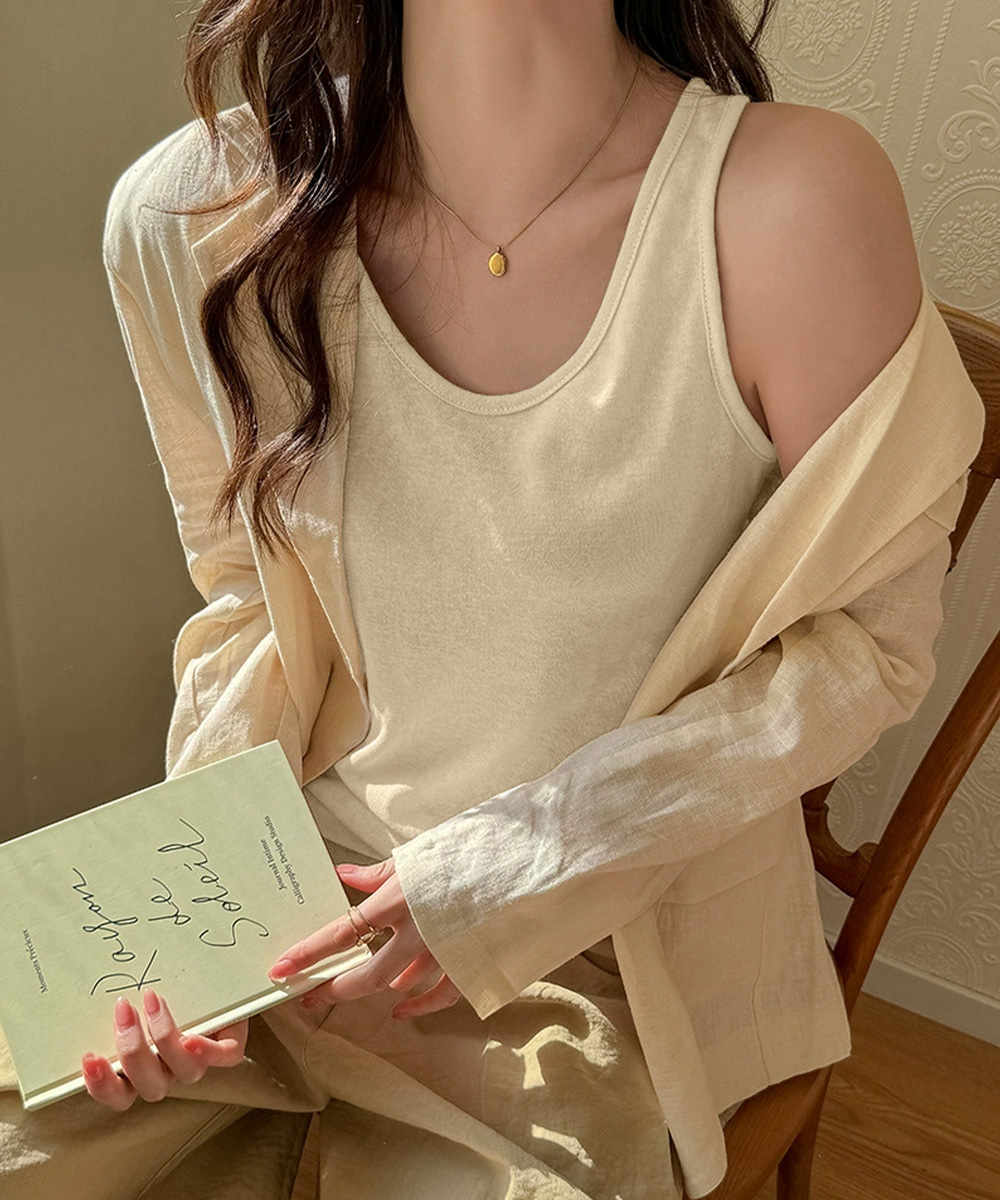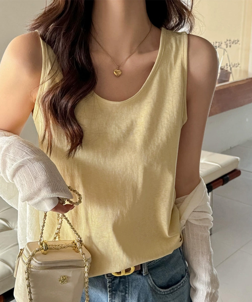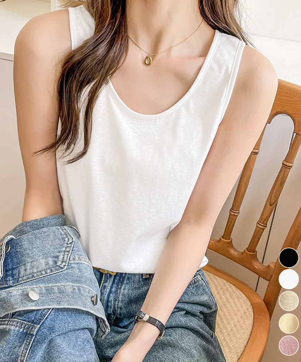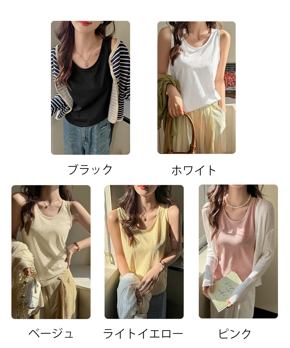ノースリーブトップスゆったり 体型カバーベーシックタンクトップシンプル 着回しインナートップス 大人カジュアル春夏服薄手 細見えトップス快適 通気性タンクトップ 定番インナー着やせ シンプルで使いやすいベーシックデザインのレディースタンクトップ。 柔らかく軽やかな素材で肌触りが良く、快適な着心地。 程よくゆとりのあるシルエットと開きすぎないUネックで、インナーにもトップスにも取り入れやすい。 カーディガンやシャツを羽織ったり、デニムやスカートと合わせたレイヤードコーデがおすすめ。 素材:綿95%+ポリウレタン5% カラー:ブラック/ホワイト/ベージュ/ライトイエロー/ピンク サイズ:ワンサイズ 着丈:約56cm 身幅:約46cm 胸囲:約92-110cm 裏地:なし 伸縮性:あり 透け感:あり ※薄手素材のため、透け感があります。同色系インナーの着用をおすすめします。